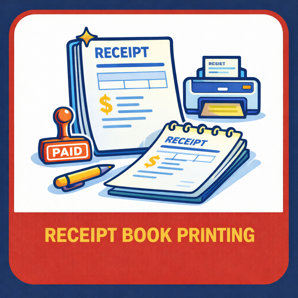 Receipt Book Printing के अंतर्गत हम shops, businesses, institutes, NGOs aur professionals के लिए custom-designed, durable aur legally usable receipt books print करते हैं। Proper receipt books से cash/online payments ka clear record, transparency aur professional image maintain hoti hai। Yeh service Receipt Book Printing in Gorakhpur ke liye fast delivery aur expert support ke saath available hai।